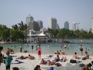 この写真はサウスバンクの中にある人工のビーチ。無料開放のプールである。オージーは、お金をあまりかけずに楽しむことが上手な人たちである。