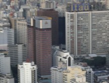 右の写真はItau銀行の宣伝看板で、その右には電光時計がありました。よく目立ち電光時計は重宝されていましたが、結局両方とも撤去されました。えんじ色のホテルの屋上にはヘリポート(青色)が設置されており、ヘリから筆者がこの写真を撮影し直後にそのヘリポートに無事着陸しました。