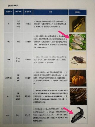 コレステロール値の高い私には、EPAやDHAなどの成分摂取が望ましいと書かれており、代表的な食材として、フナと雷魚の写真が掲載されていました。
