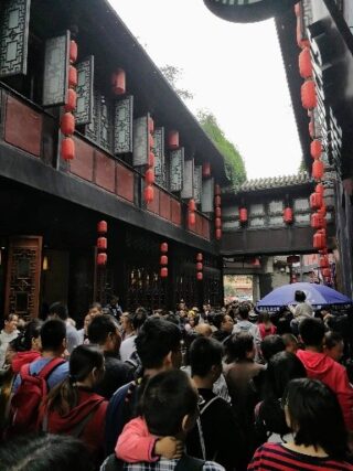 私は成都に住み始めた頃、そんなに混雑するとは知らずにうっかり国慶節期間中に武侯祠を訪れたことがありました。家からタクシーに乗って向かう途中、運転手に「成都市内に住んでいて、武侯祠なんていつでも行けるのに、どうしてよりによってこんな時期に行くのか?」と言われたのですが、着いてみて分かりました。武侯祠のチケット売場には長蛇の列。武侯祠のすぐ横には、「錦里」という古い街並みを再現した場所があるのですが、こちらも人・人・人……。結局その日は諦め、なんでもない日曜日に出直しました。