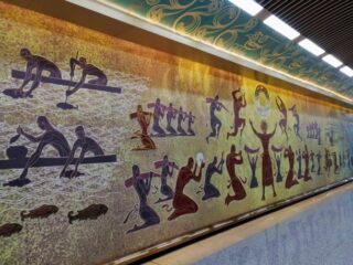 地下鉄の駅自体が、すでに博物館の様相を呈していて、かなりワクワクします。金面具が出土されたからでしょうか。エレベータまで金ピカです。