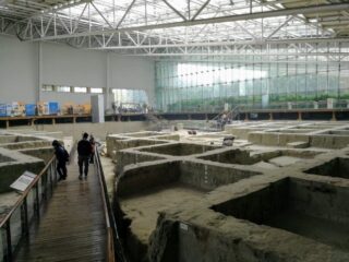 遺跡は巨大なドームに覆われていて、全体を見渡せるようになっており、迫力があります。どこから何が出土されたのか、写真も展示されています。
