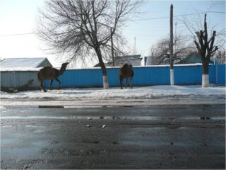 移動途中に牛、馬、羊等の放牧風景をよく見かけたが、ラクダは珍しく、車中から撮影した(写真4)。カザフスタンでの宗教は、イスラム教47%、正教会44%、プロテスタント2%、その他7%の比率構成で、写真5は別工場近くの有名なモスクを撮影したものである。