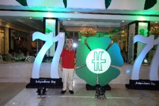 右の写真は、独立71周年を祝う ホテルロビーの飾りです。昔習った東パキスタンは、今はバングラデッシュ(1971年にパキスタンより独立)です。