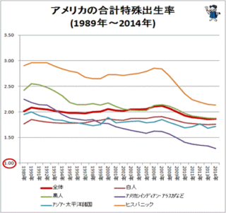 白人出生人口は既に過半数を割り、2043年には全体の白人人口が半数以下となることが予想されています。つまり白人の出生率は日本同様減少傾向ながら、黒人、ヒスパニックその他の人種の出生率が高い上に、移民の増加でアメリカ人口は全体で毎年2百万人から3百万人増加している、先進国で唯一の人口増加国なのです。