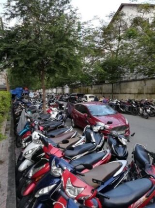 ベトナムに来て驚いたことはなんといっても街中に雲霞の如くあふれているバイクです。どの道もバイクだらけで、特に朝夕の通勤、通学のラッシュ時は交通渋滞もすごく、クラクションがあちこちで鳴りひびいています。