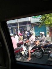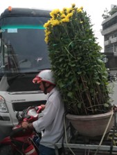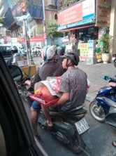ベトナムの人々は大きなものでも何でもバイクで運んでしまいます。ウオーターサーバー用のウオータータンクを観覧車のように10個以上くくりつけて走っているバイクもいました。(よくあれで事故が起きないものだと感心していたらやっぱり事故は起きるようで、ある時、バス停で頭と腕から血を流している人がぼんやり座っているのを見かけました。)